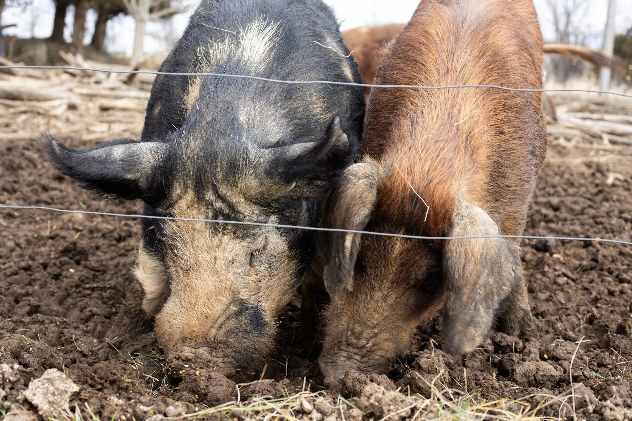 Our heritage breed pigs are pasture-raised or forrest raised, with natural feed and plenty of fresh air, ensuring flavorful, tender pork raised the old-fashioned way—honestly and sustainably.